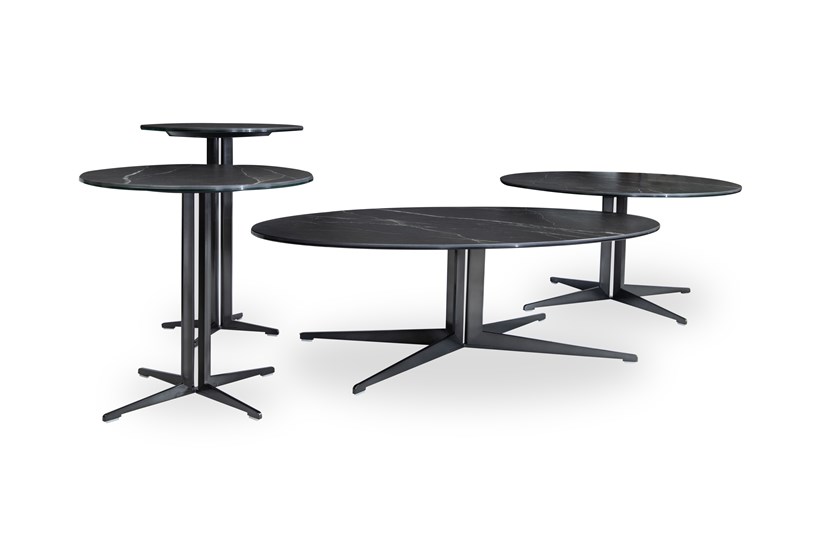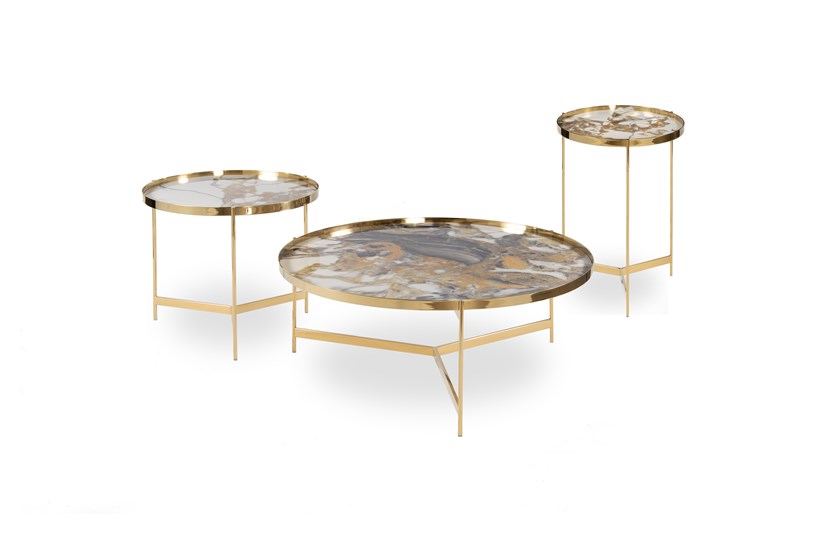 Tavolini presents a combination of stainless steel with tops made of Italian LAMINAM quartz sinters.